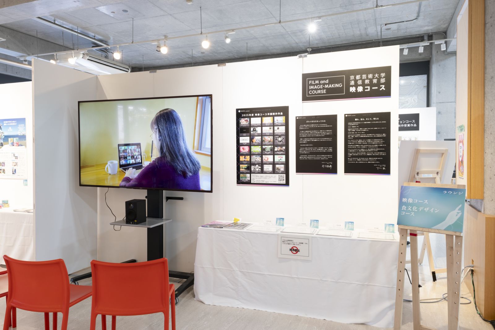 本作品は、今年度の学科賞受賞作でもあります。会場では、多くの人が足を止めたり、設置された椅子に座ったりして、映像をじっくりと楽しんでいました。