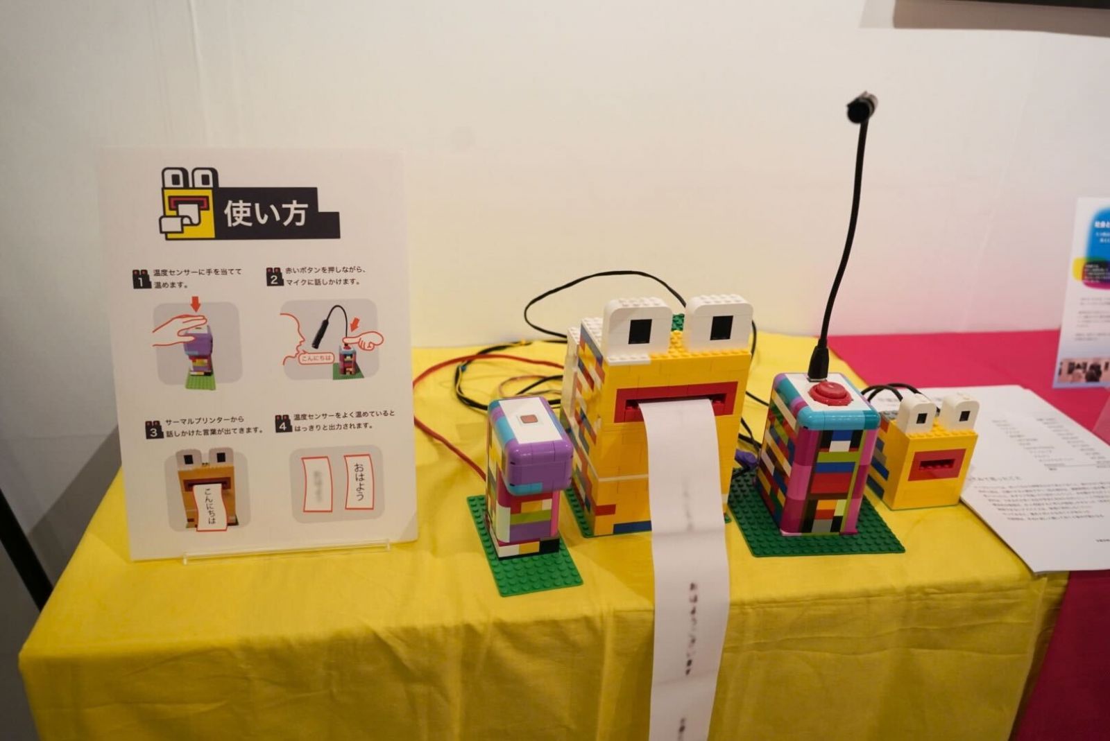 マイクが拾う「声・言葉」をコンピュータを通し、プリントします。その声の温度により、その文字の解像度が変化するというもの。一部体験型として展示され、印象的な作品です。