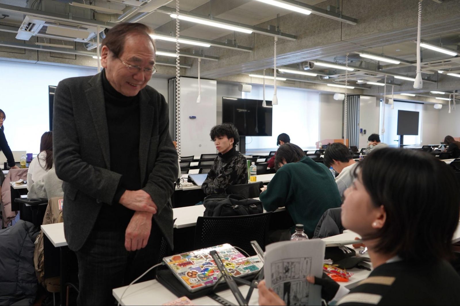 細井先生:出張編集部はマンガ学科時代に学科長をされていた志賀公江さんのご紹介で、集英社の少女マンガ編集部に来ていただいたのがはじまりだったんです。少年向けも増やしたいと思っていた頃、ちょうど出版社の方から「少年誌の編集部も来たいと言っていて…」というお声がけをいただいて、ぜひぜひと。ですが、集英社のカラーに合う学生だけではないので、僕がこれまでにつながりのあった編集者にもお願いして、小学館や講談社からも来ていただけるようになりました。学生や卒業生たちの頑張りもあって、編集者の方も「この大学は行っても損はない」と思ってきてくださるところが増えてきたのかなと、感じています。